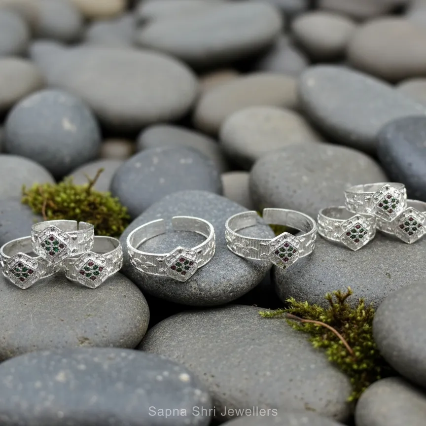 Elegant silver angutha-bichiya set ideal for weddings and cultural events.