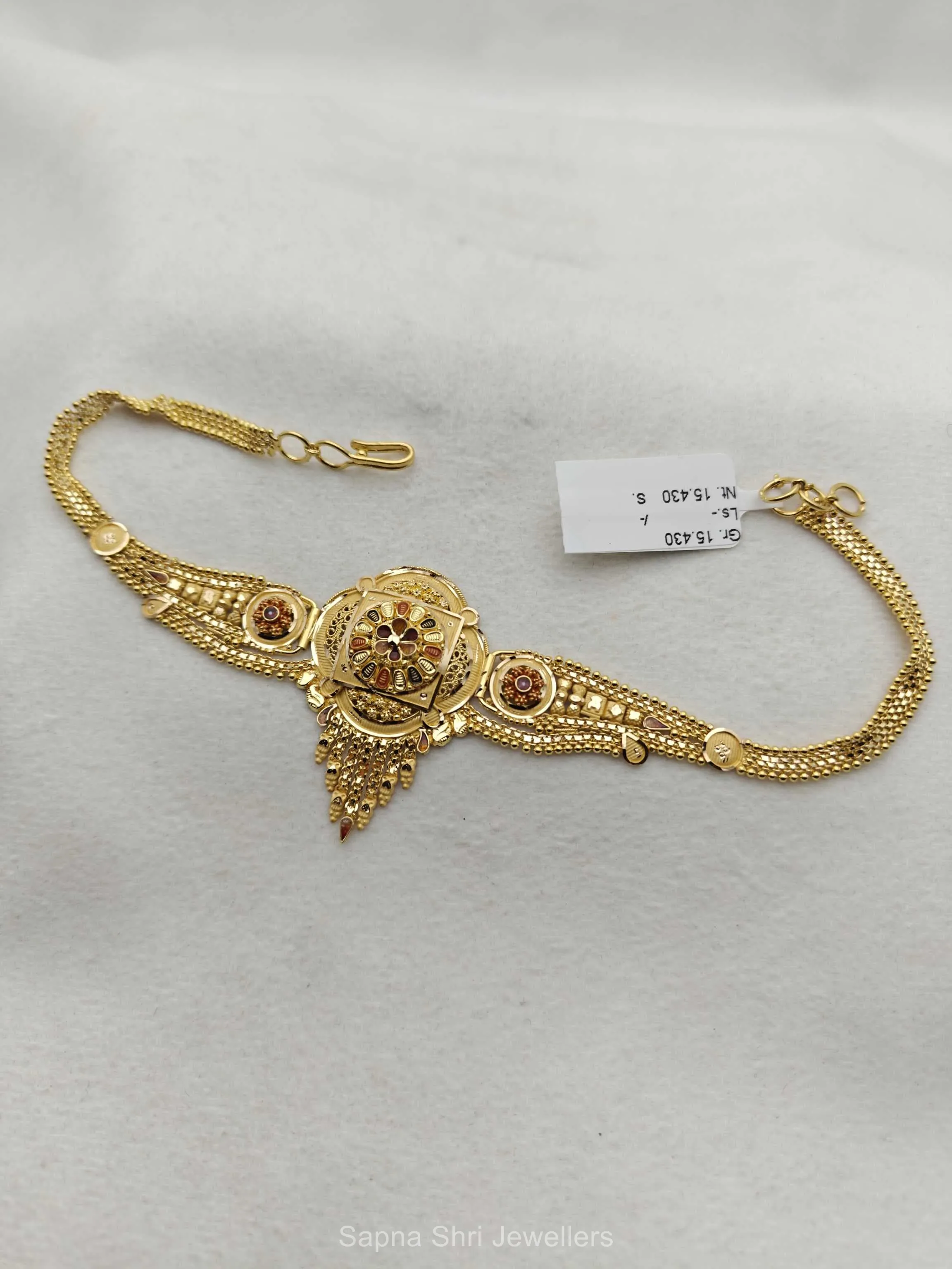 BIS HallmarkAttractive 22K 916 hallmark gold Bajuband with unique texture and fine Meenakari work, suitable for any special occasion.