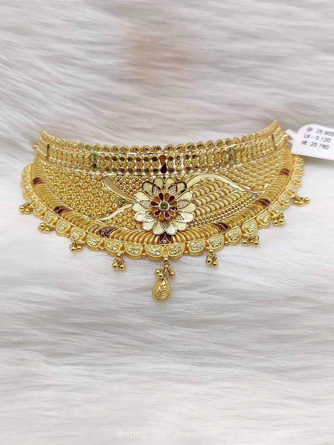 BIS HallmarkPrecision-crafted geometric patterns combined with traditional floral elements make this choker a versatile choice for both brides and guests.