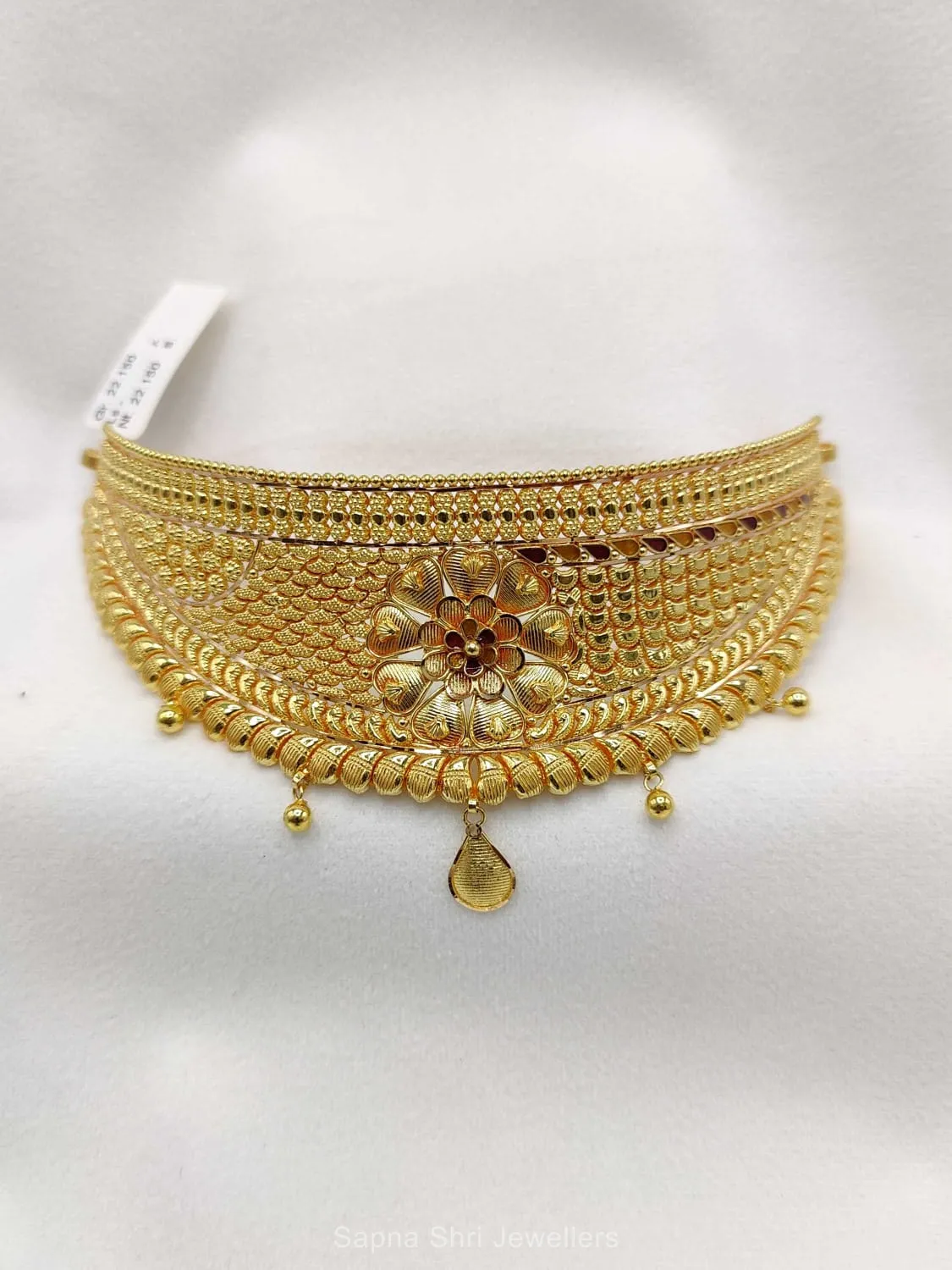 BIS HallmarkRadiating elegance, this choker features a sunburst floral design with meticulous gold bead accents, handcrafted to perfection for an unforgettable bridal look.