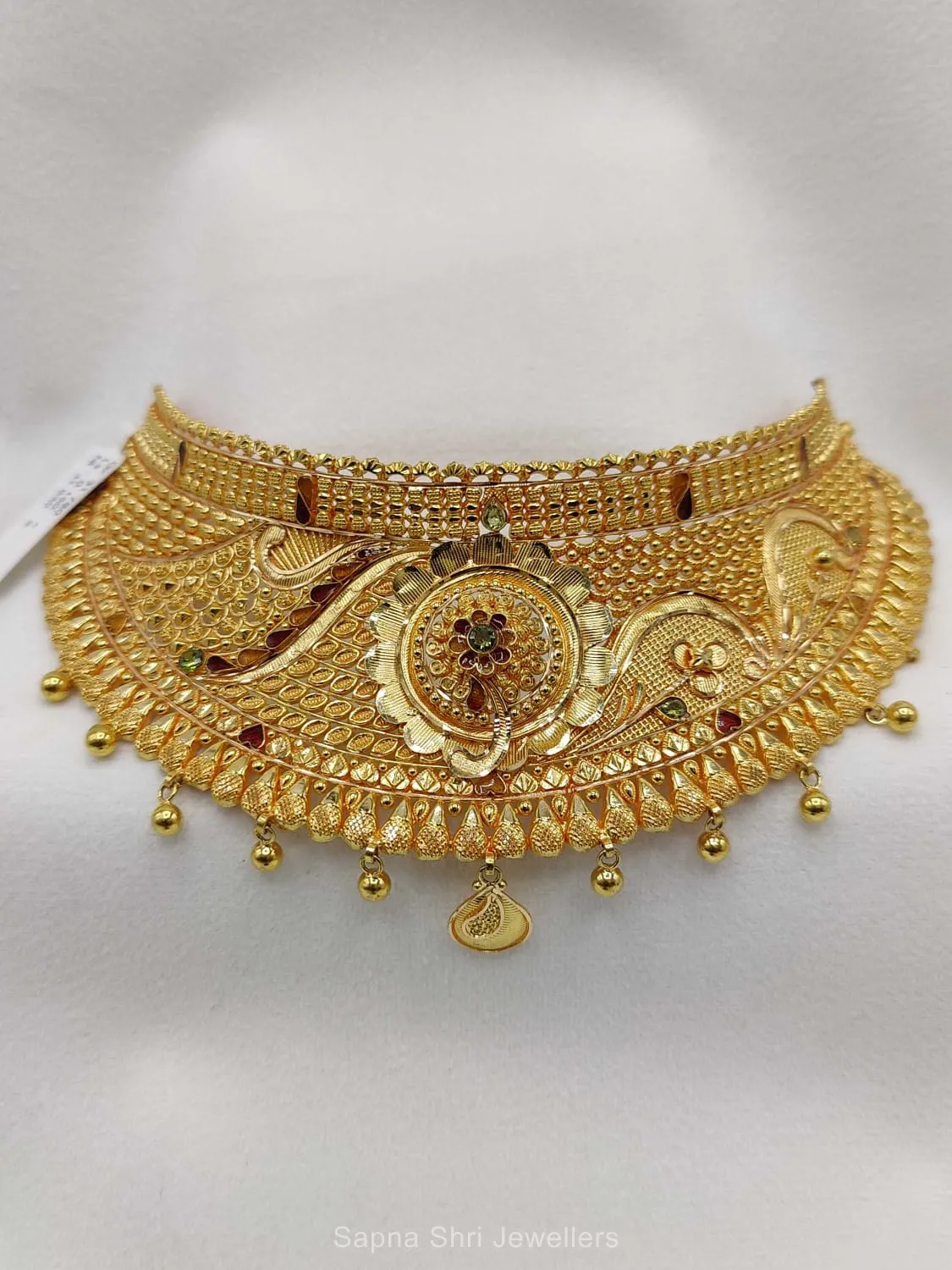 BIS HallmarkDefined by its graceful swirls and ornate patterns, this premium gold choker reflects superior craftsmanship designed to enhance the beauty of traditional attire.