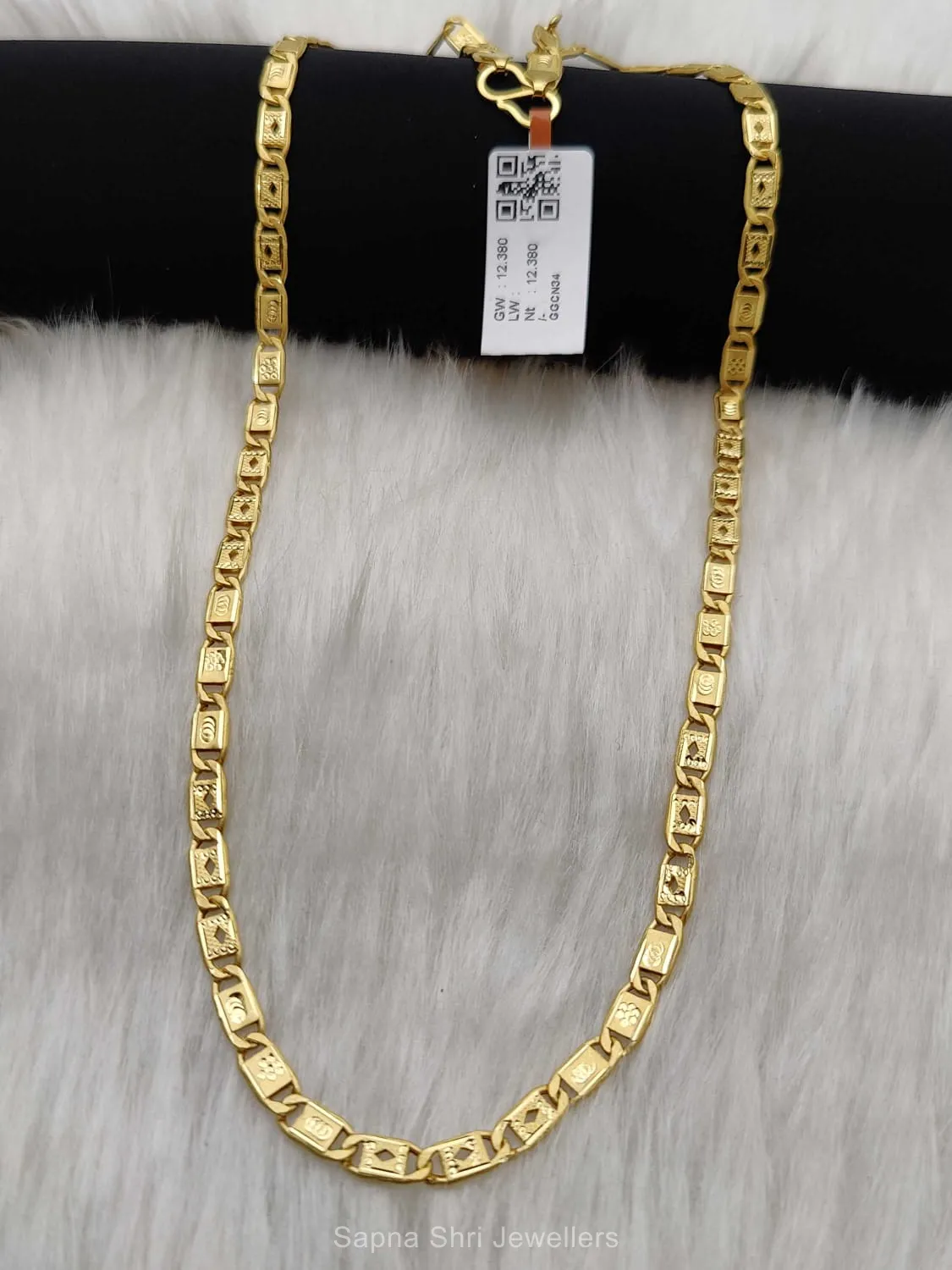 BIS HallmarkPremium gold chain featuring alternating geometric motifs. Each link is meticulously crafted to ensure a smooth finish and a luxurious aesthetic for any occasion.