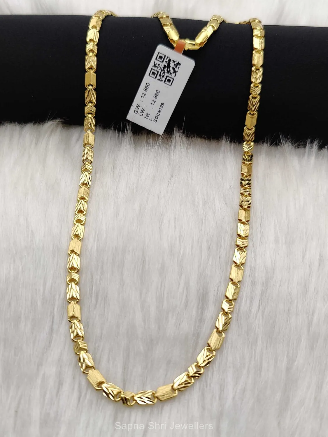 BIS HallmarkThis stunning gold chain features intricate arrowhead carvings that catch the light from every angle. Masterfully polished to provide a premium look that complements both ethnic and formal attire.