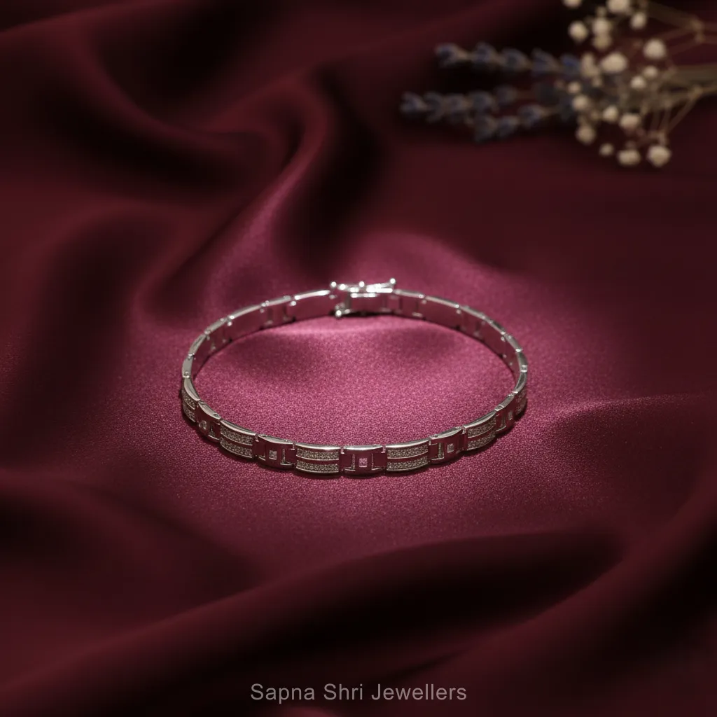 Crafted with precision, this bracelet features rows of shimmering stones set in sterling silver to represent the bright milestones of your life. It’s an emotional piece that glows as much as your personality, making it the ideal gift for a loved one or yourself. Wear it to weddings or festive celebrations to capture the magic of the moment. 925 Silver. Perfect for sensitive skin. Order will be delivered in 14 Days. Comes with Jewellery authenticity certificate. Content: Bracelet. Net Qty- 1 unit.