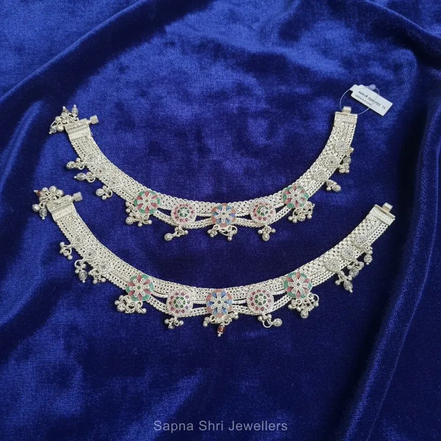 Beautiful heavy bridal silver payal with decorative work—perfect for weddings.