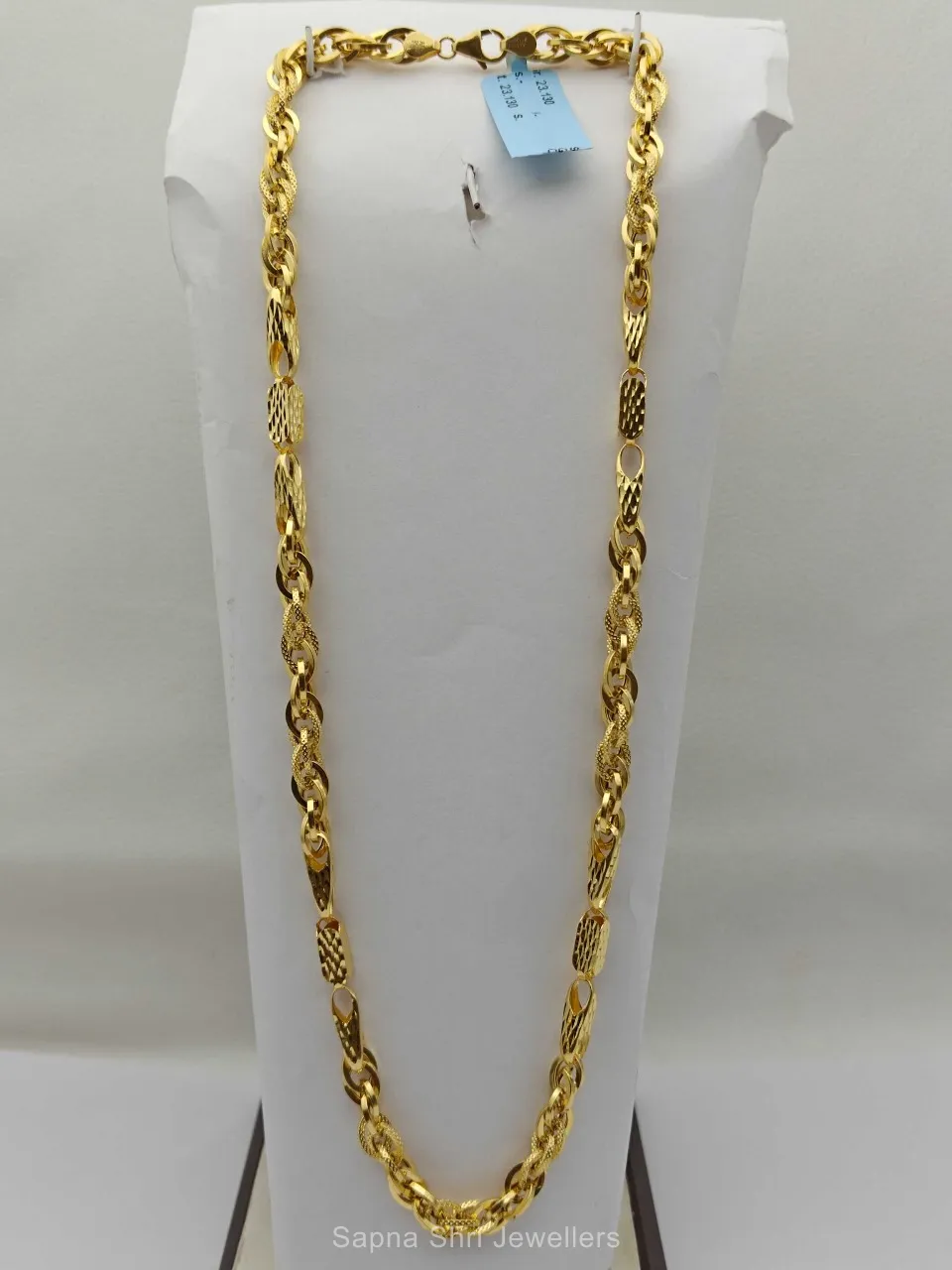 BIS HallmarkDefined by its bold oval links and intricate textured patterns, this premium gold chain blends traditional Indian artistry with a modern silhouette for the discerning wearer.