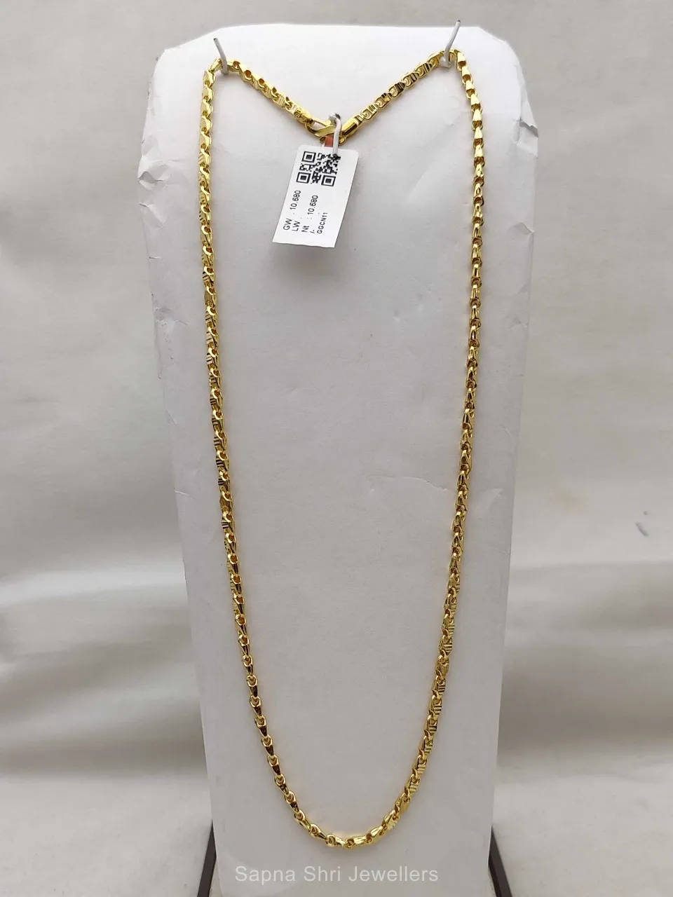 BIS HallmarkFeaturing delicate cylindrical links with fine horizontal engravings, this gold chain exemplifies minimalist luxury and precision engineering for everyday premium wear.