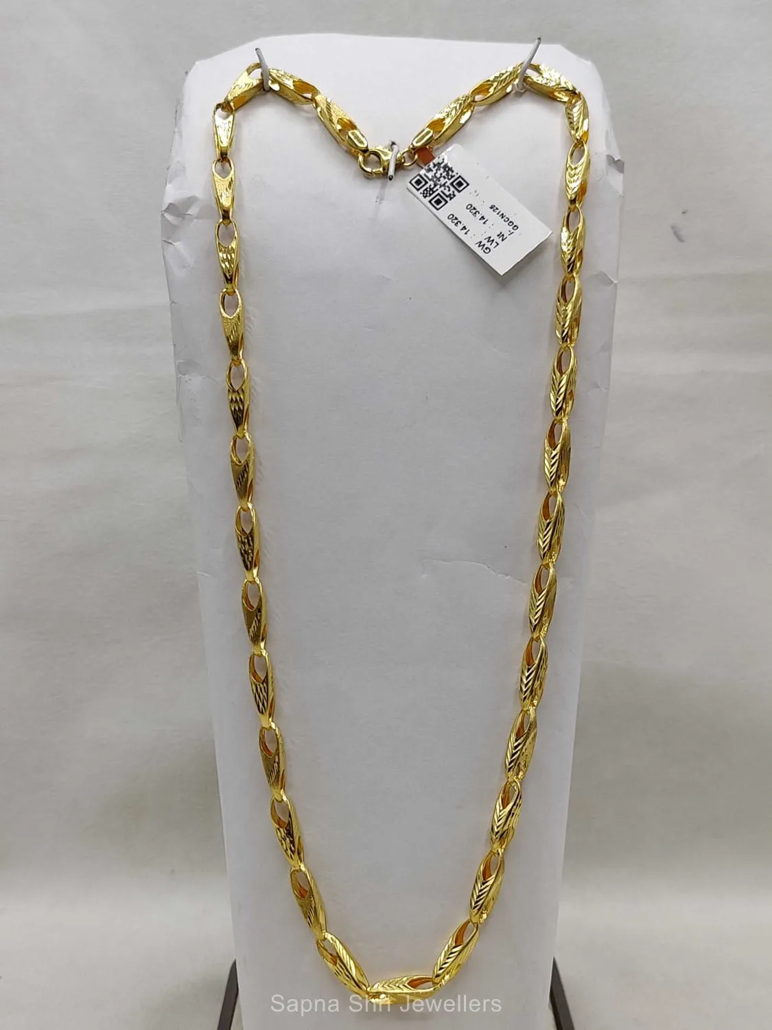 BIS HallmarkExperience the beauty of nature with this exquisite gold chain featuring delicate leaf-inspired motifs. The precision-cut detailing ensures a brilliant shimmer with every movement you make.