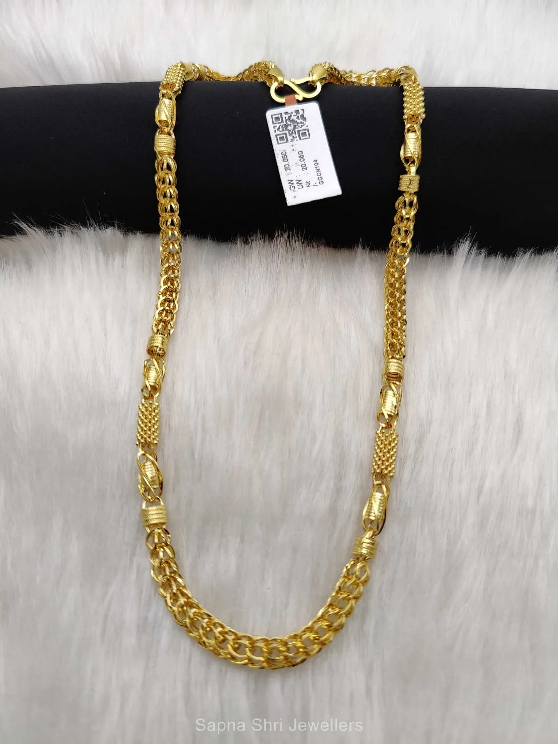 BIS HallmarkAn opulent statement piece featuring a blend of curb links and textured cylindrical spacers. This grand design reflects the rich cultural legacy of premium Indian goldsmithing.