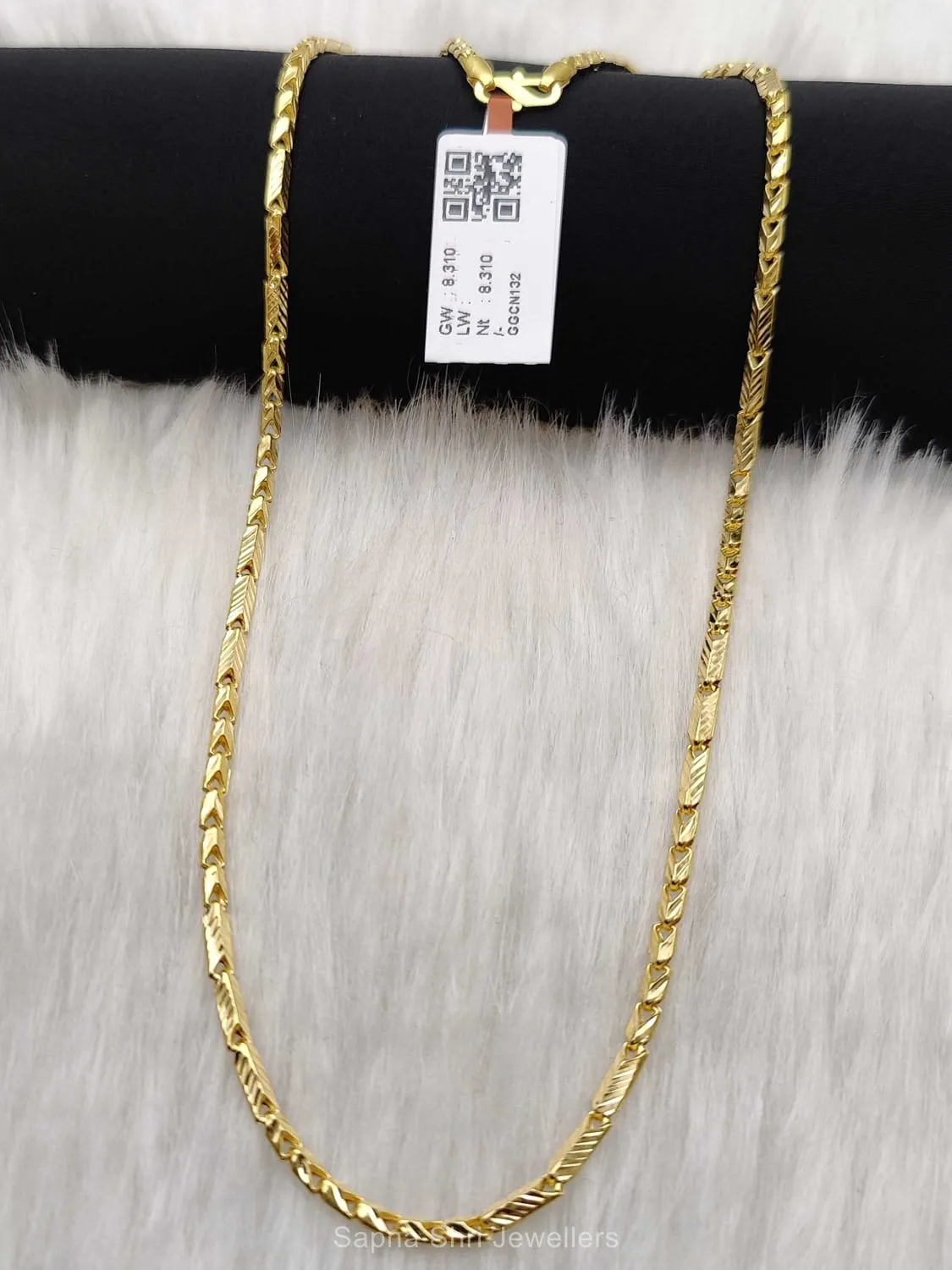 BIS HallmarkThis slim, elegant chain features repetitive arrowhead motifs and fine etchings. A lightweight yet durable piece that embodies modern sophistication and gold purity.