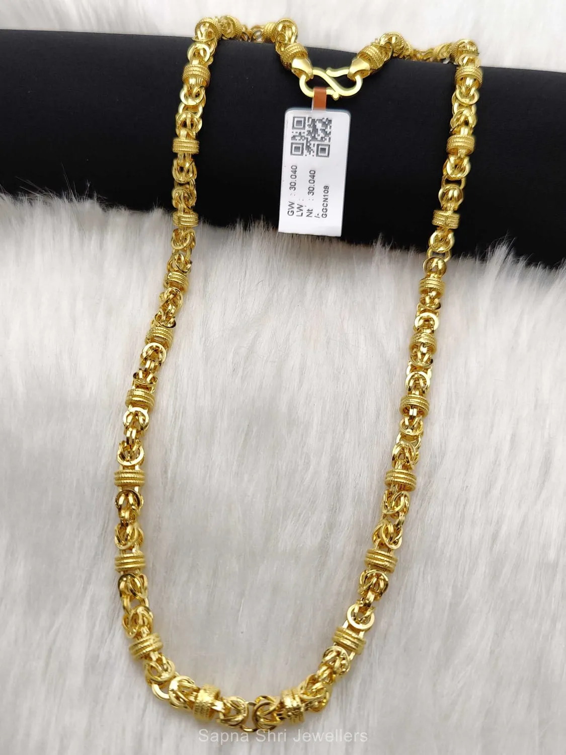 BIS HallmarkMake a grand statement with this heavy-duty gold chain featuring interlocking rings and ribbed textures. A true testament to the grandeur of traditional Indian jewelry design.