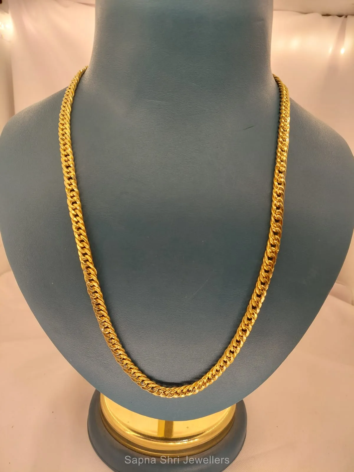 BIS HallmarkA powerful statement piece, this curb link chain is enhanced with fine textured patterns on every link. It combines a bold silhouette with the intricate touch of expert Indian goldsmiths.