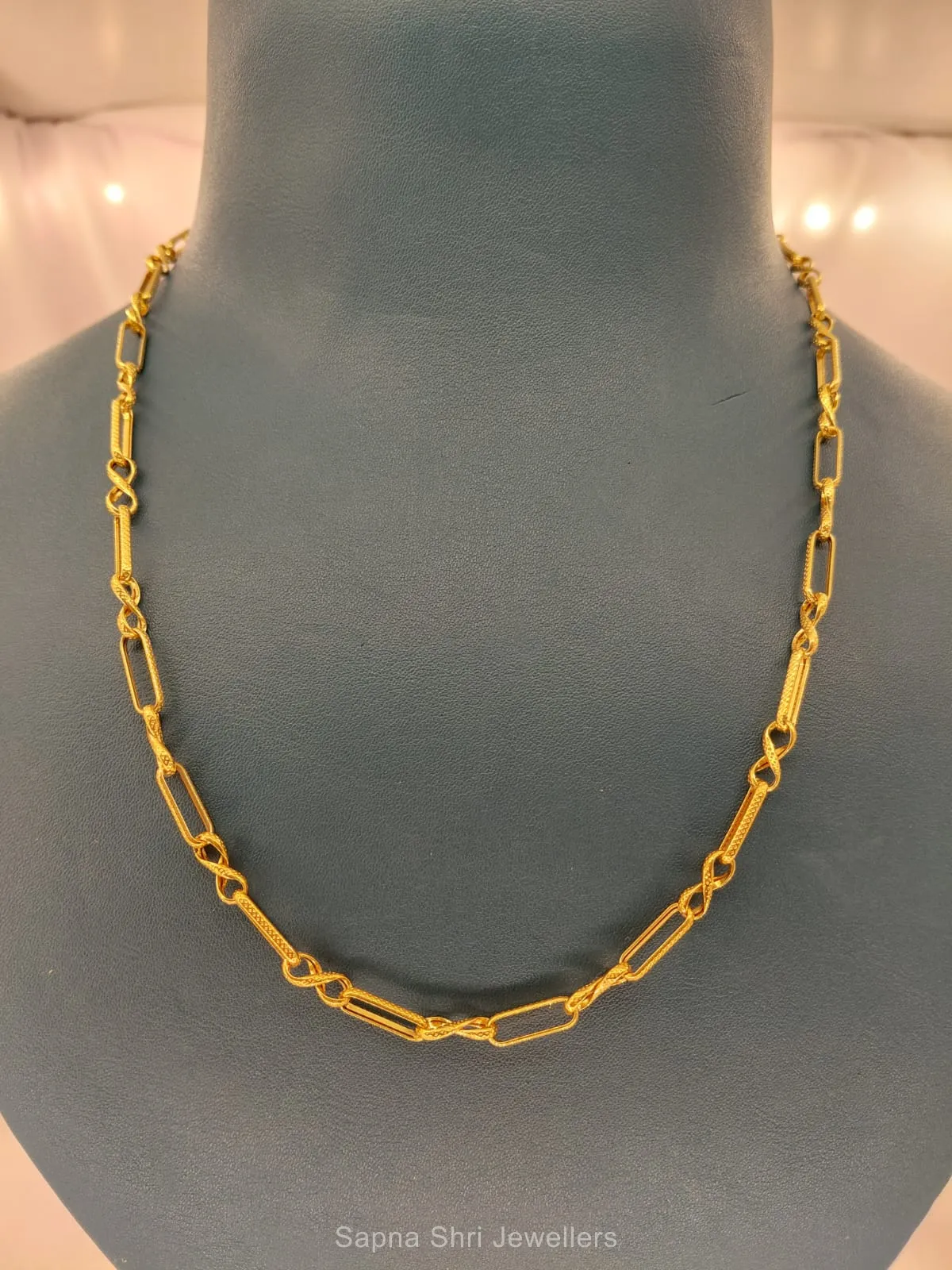 BIS HallmarkThis premium gold chain features sophisticated elongated links with intricate textured detailing. A perfect blend of modern geometric design and traditional Indian craftsmanship for daily elegance.