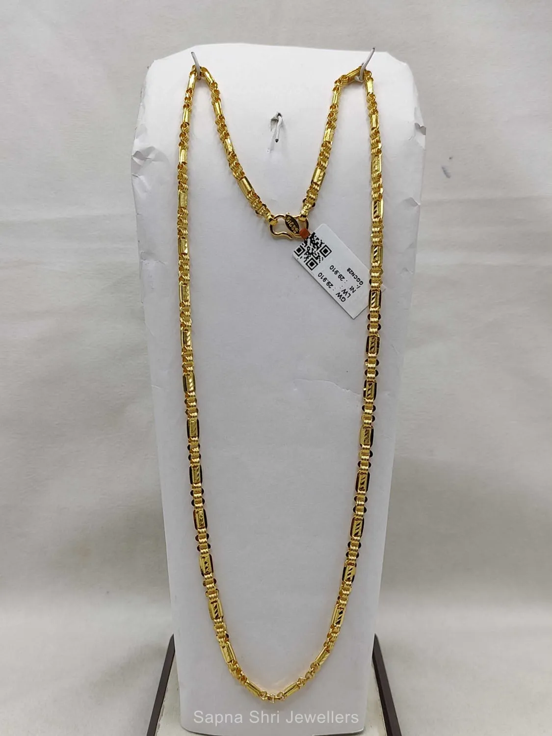 BIS HallmarkA stately long chain composed of textured cylindrical beads and alternating link patterns. Designed to offer a rich, substantial look for traditional Indian celebrations.