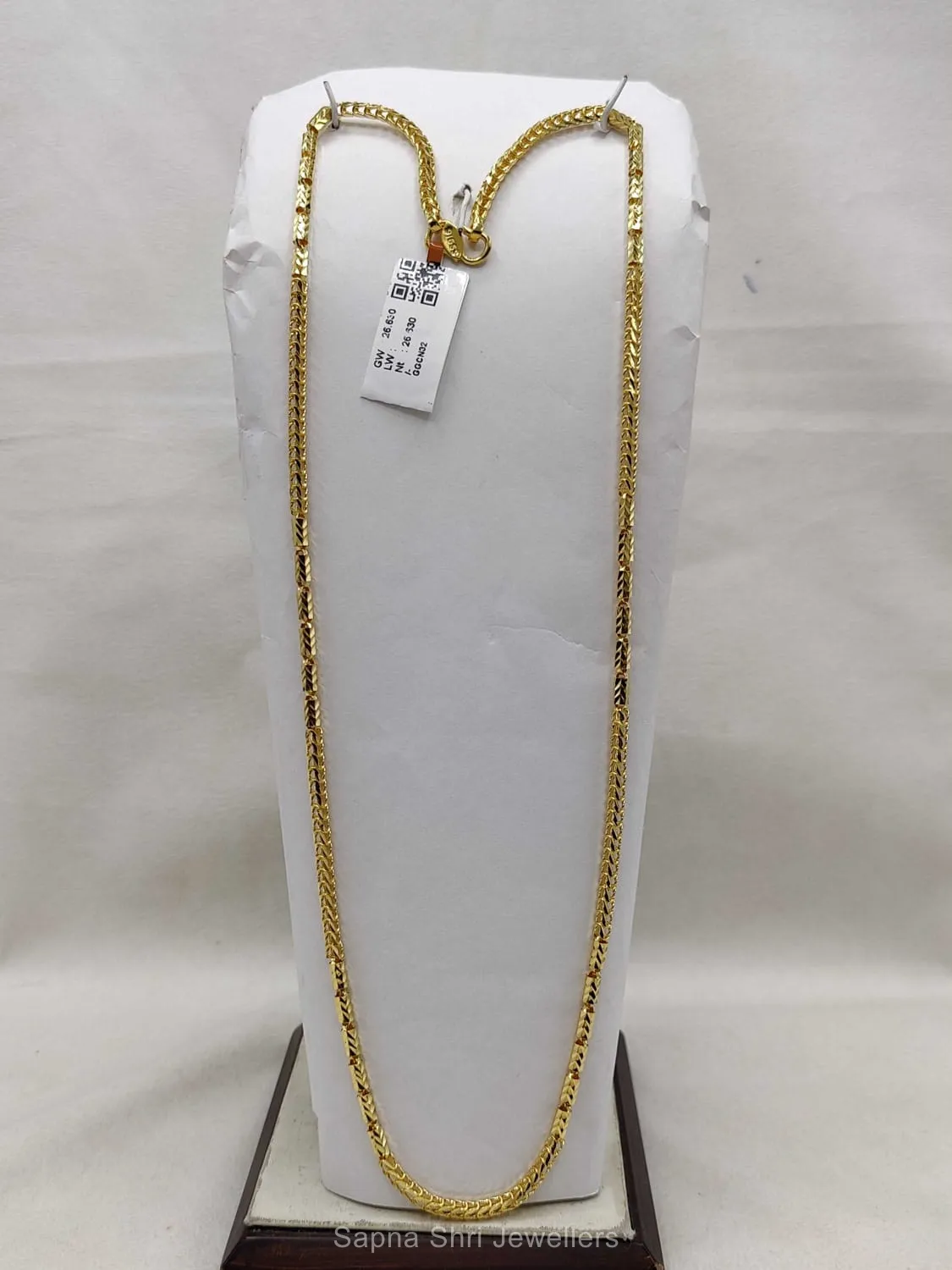 BIS HallmarkA sleek and contemporary gold chain with fine V-shaped textured links, designed for a smooth feel and elegant shimmer on the neckline.