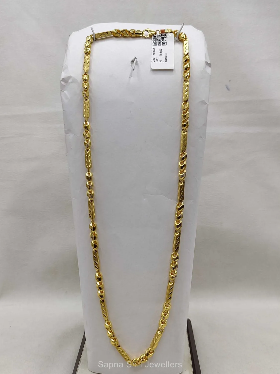 BIS HallmarkThis exquisite gold chain combines cylindrical motifs with textured bar links, showcasing premium craftsmanship and a bold aesthetic for men.