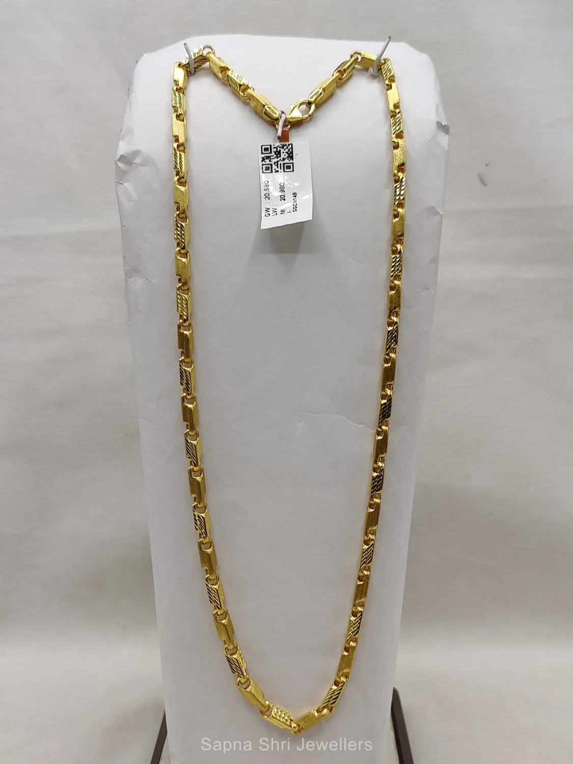BIS HallmarkFeaturing elongated bar links with alternating textures, this gold chain is the epitome of minimalist luxury. Crafted with precision for a smooth and comfortable premium feel.