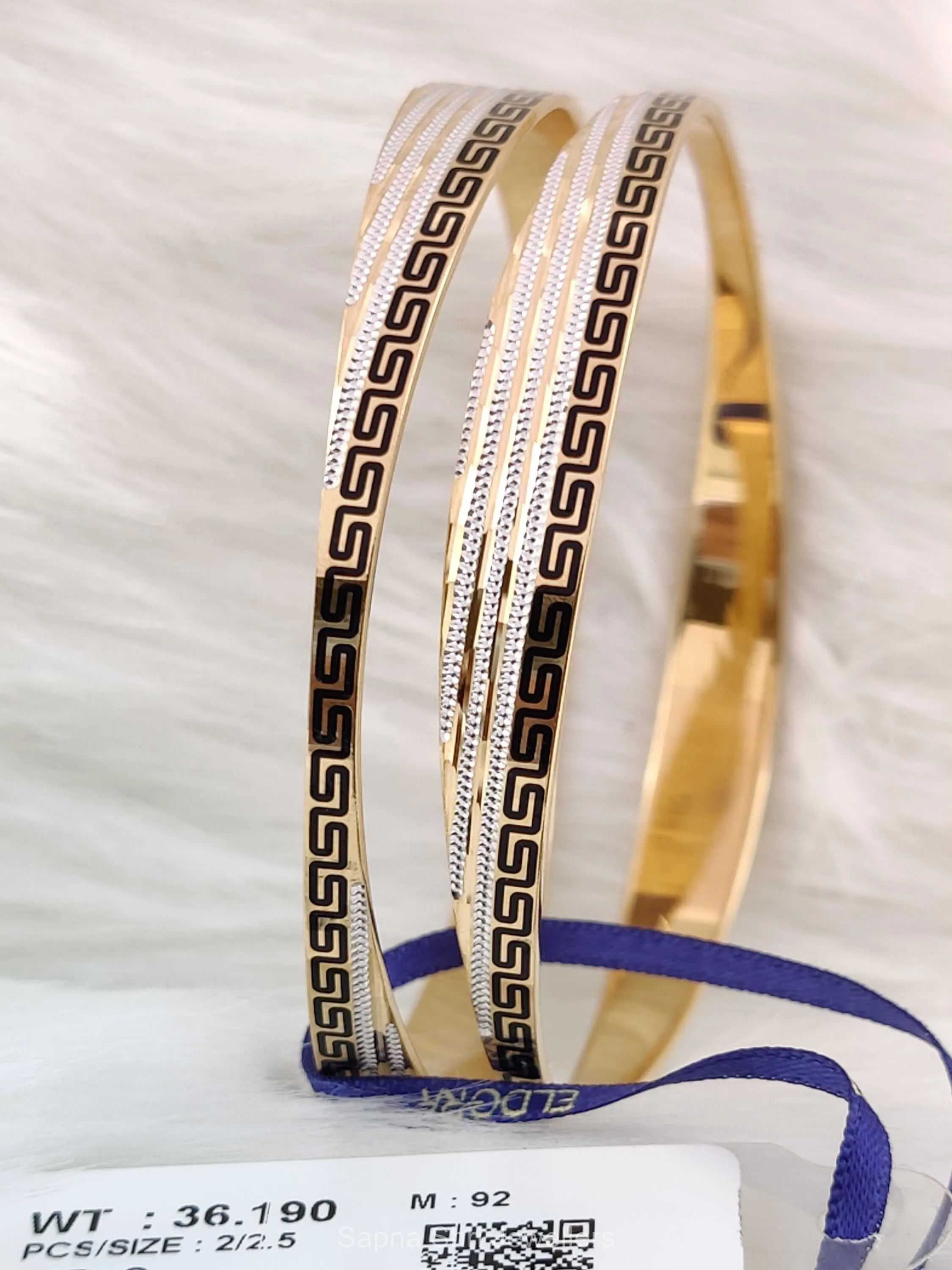 BIS HallmarkClassic Greek key patterns meet modern dual-tone styling in this elegant bangle set. The white rhodium accents contrast beautifully against the high-quality yellow gold.