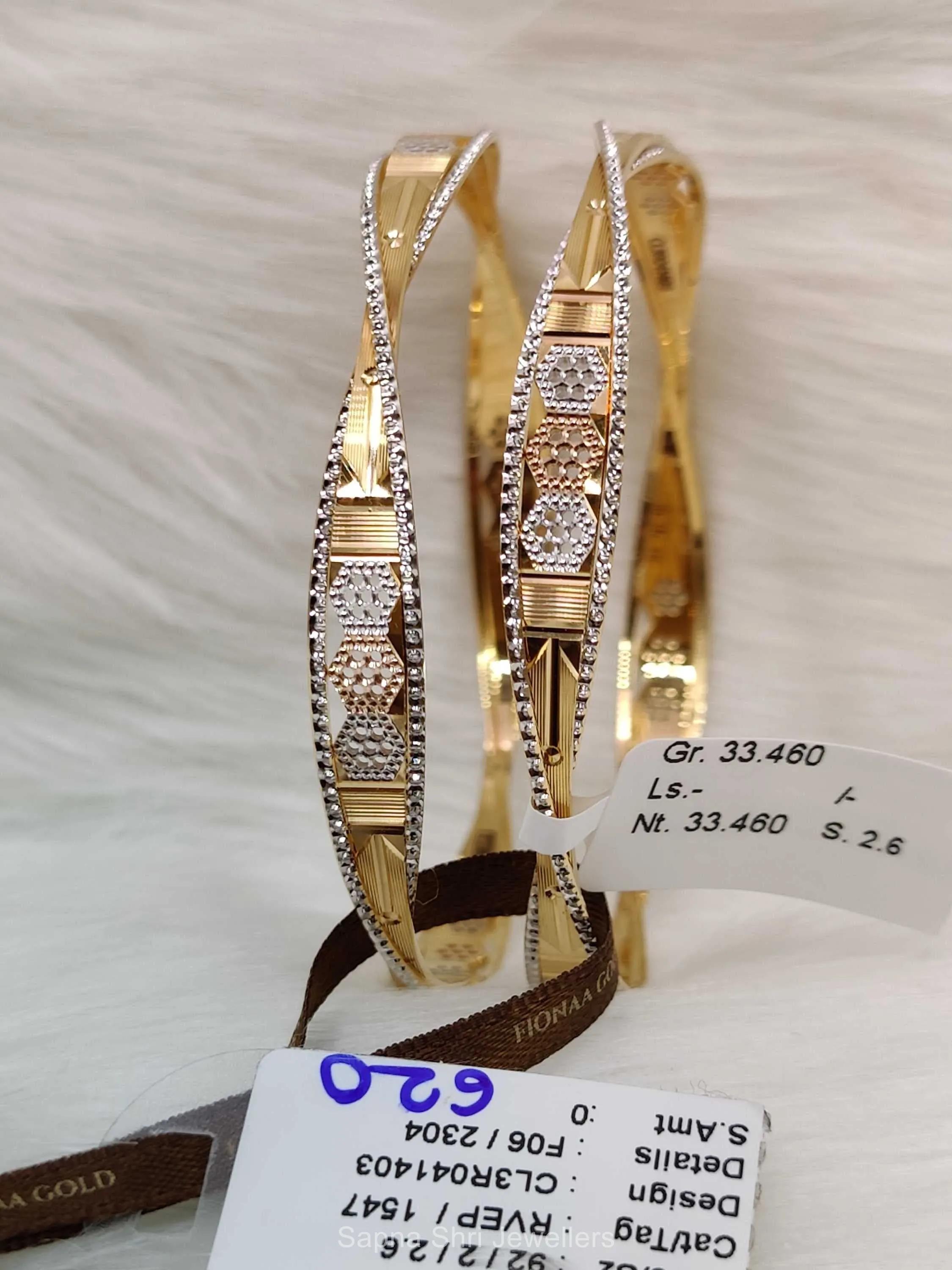 BIS HallmarkExquisite craftsmanship featuring a stunning tri-tone finish and hexagonal filigree patterns. These bangles showcase intricate rhodium and rose gold detailing for a luxury feel.