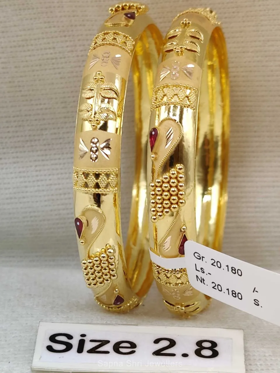 BIS HallmarkThese kadas feature high-relief gold beads and meticulously crafted leaf motifs. The combination of sandblast matte and high-shine finishes creates a luxurious look for the modern woman.