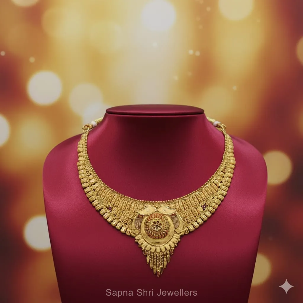 BIS HallmarkGrand and heavy 22K 916 HUID hallmark gold necklace (Haar), a spectacular statement piece for weddings and special occasions.