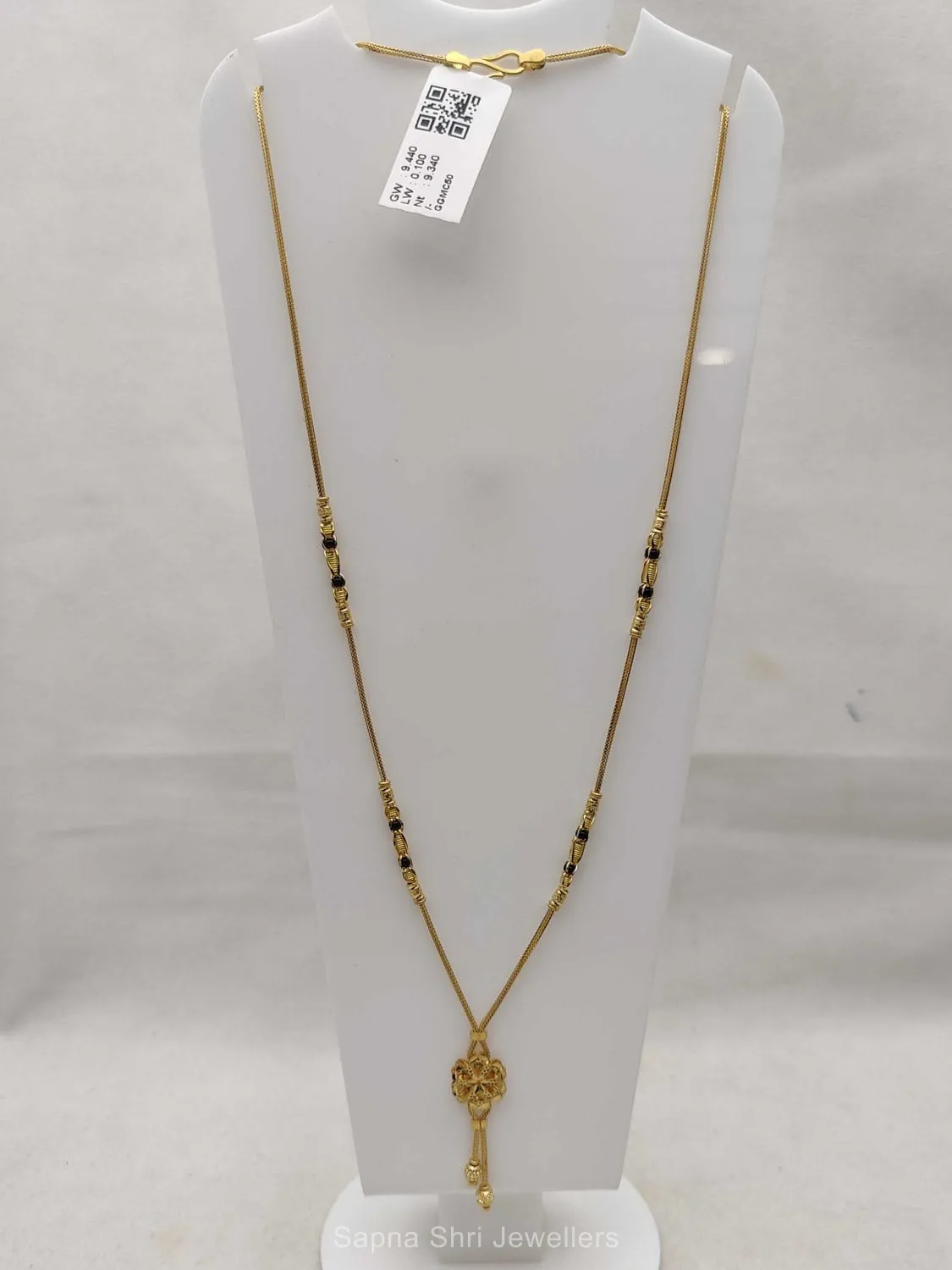 BIS HallmarkThis premium gold mangalsutra showcases a stunning floral-inspired pendant and delicate beadwork, reflecting a perfect blend of natural beauty and traditional craftsmanship.