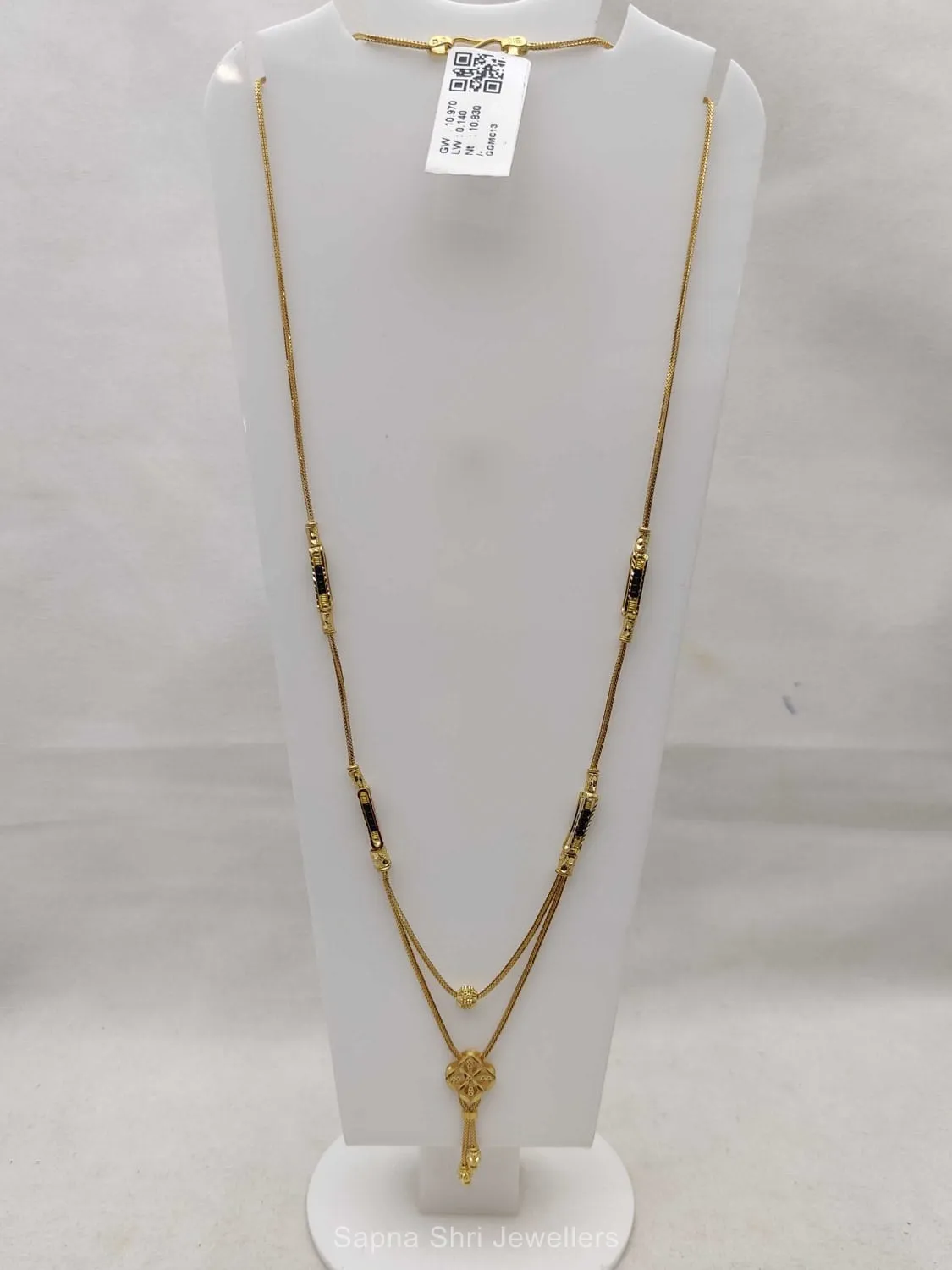 BIS HallmarkThis designer gold mangalsutra features a dual-layer chain and a central petal-inspired motif, reflecting exquisite craftsmanship and an eye for artistic detail.