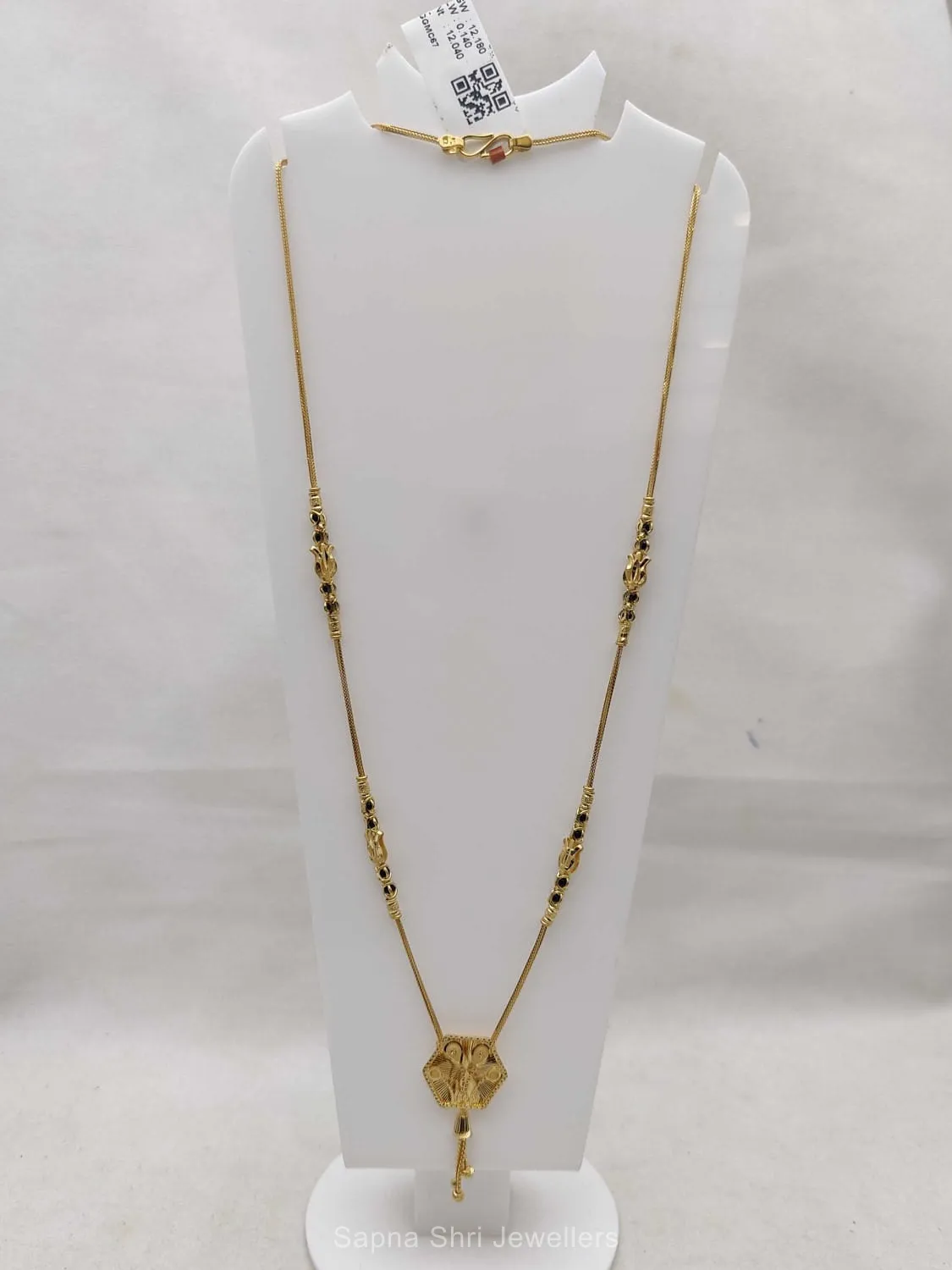 BIS HallmarkA modern take on tradition, this mangalsutra features a hexagonal filigree pendant and ornamental beads, meticulously crafted for a high-end and luxurious appearance.