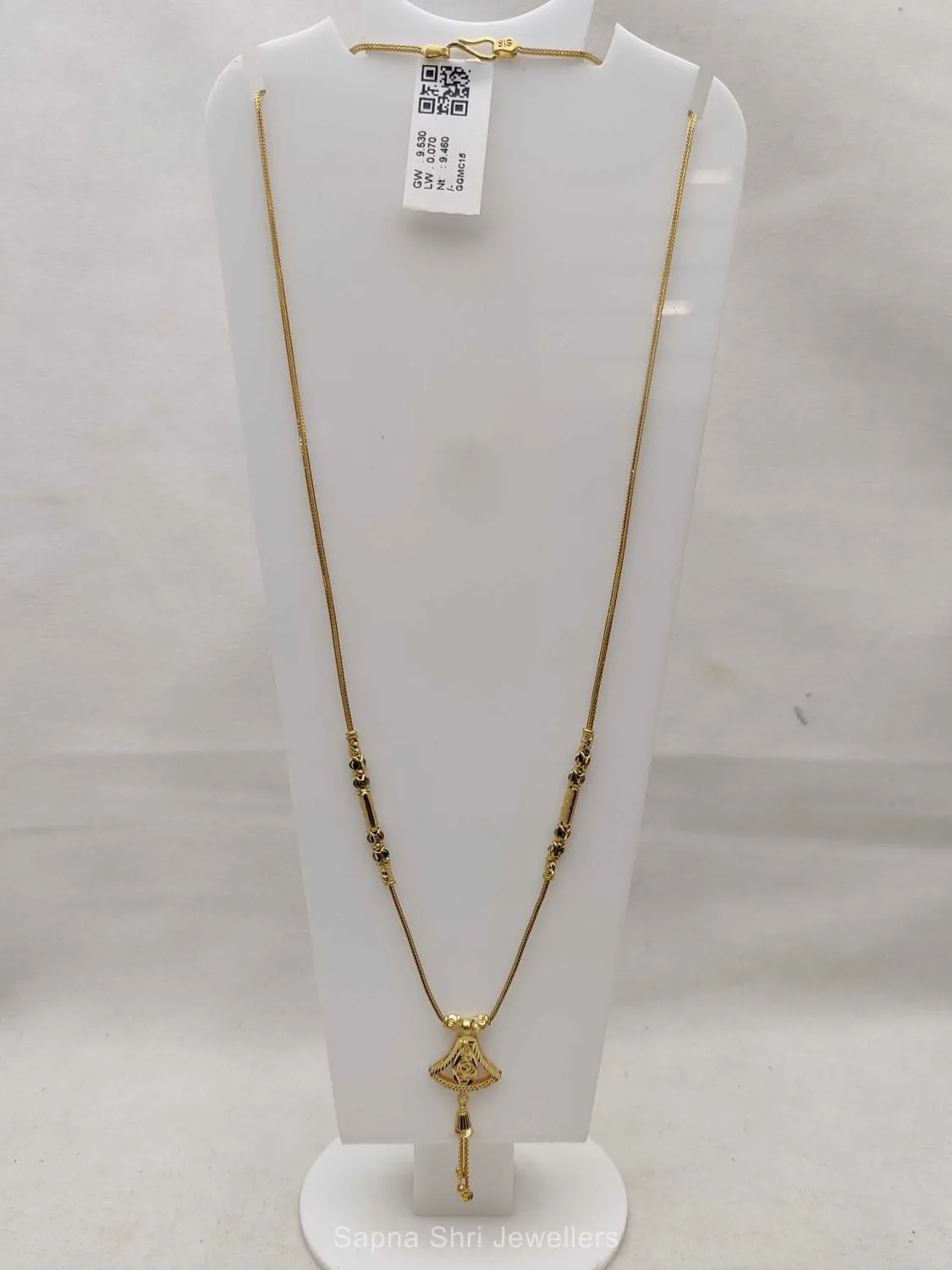 BIS HallmarkThis striking fan-shaped pendant mangalsutra chain captures the essence of heritage with a modern twist, ensuring you stand out with a piece that is both regal and contemporary.