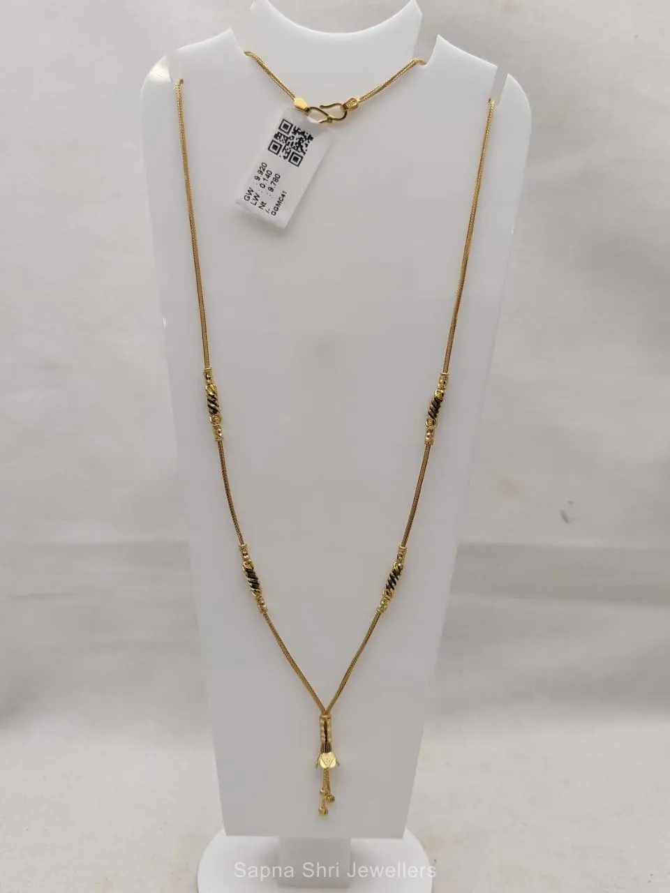 BIS HallmarkFeaturing a unique bell-shaped drop pendant, this gold mangalsutra chain is a testament to creative craftsmanship, designed to add a touch of distinction to your jewelry collection.