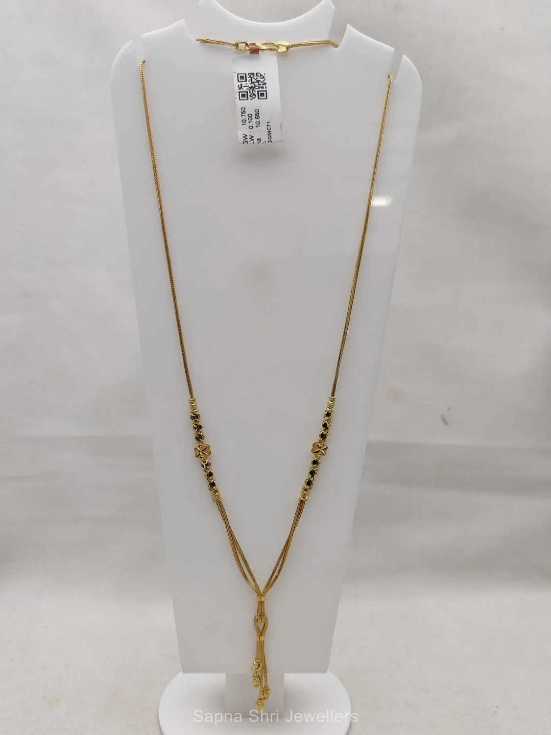 BIS HallmarkThis elegant mangalsutra is adorned with intricate black and gold beadwork and a classic knot-style drop. It represents a premium take on traditional heritage, perfect for formal occasions.