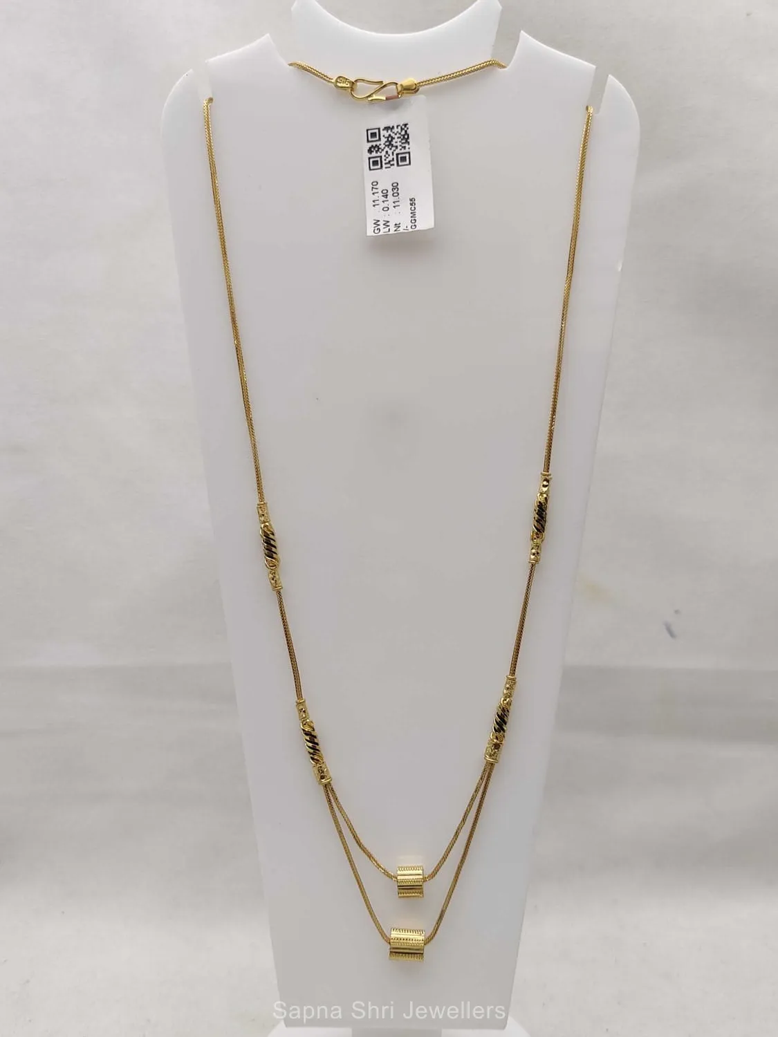 BIS HallmarkFeaturing a sophisticated double-layered design with cylindrical gold accents, this piece showcases superior craftsmanship. The modern silhouette makes it an essential for the stylish Indian woman.