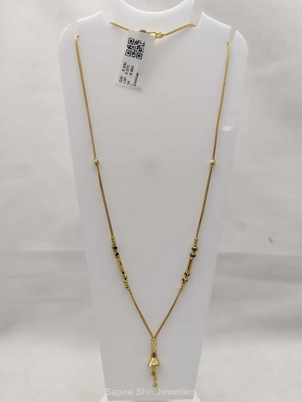 BIS HallmarkA classic mangalsutra chain featuring stylized gold motifs and protective black beads. Crafted with precision to celebrate cultural heritage through a premium aesthetic.