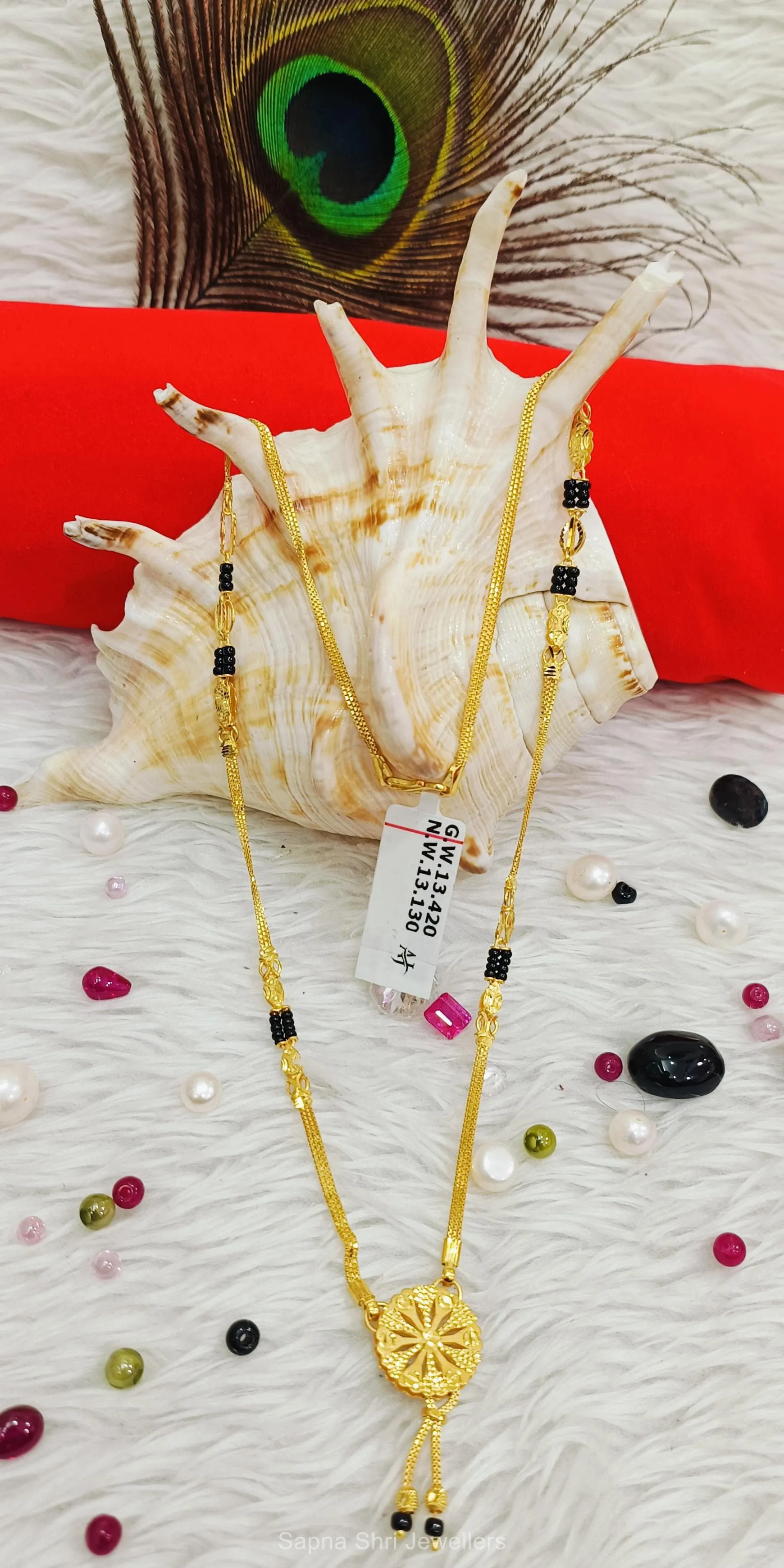BIS HallmarkAdd a radiant glow to your look with this expertly crafted Mangalsutra featuring a symmetrical sunburst pendant and traditional black bead detailing.