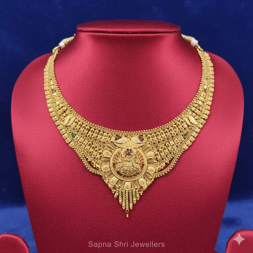 BIS HallmarkGrand and heavy 22K 916 HUID hallmark gold necklace (Haar), a spectacular statement piece for weddings and special occasions.