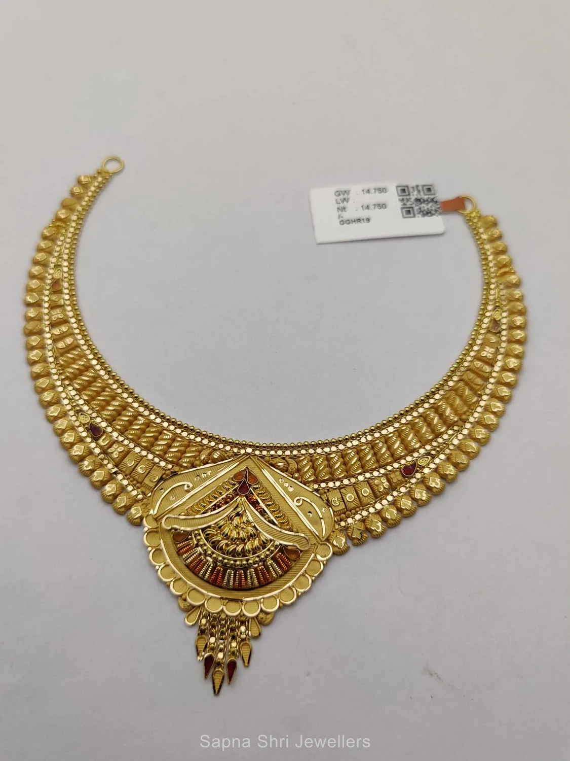 BIS HallmarkA masterpiece of design, this V-shaped gold haar offers a regal silhouette with textured gold beads and a sophisticated centerpiece for a timeless ethnic look.