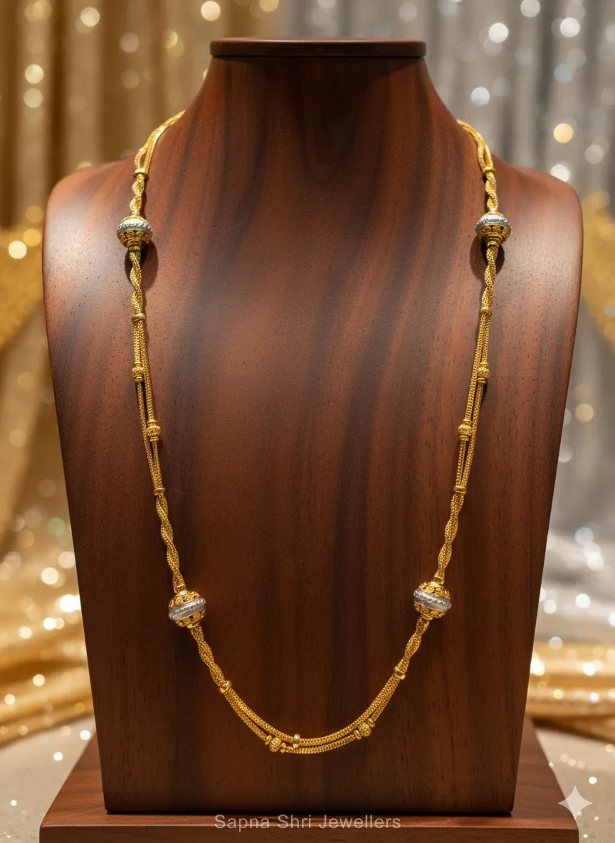 BIS HallmarkTrendy dual-tone 22K 916 HUID gold chain designed for daily wear with guaranteed purity and elegant detailing.