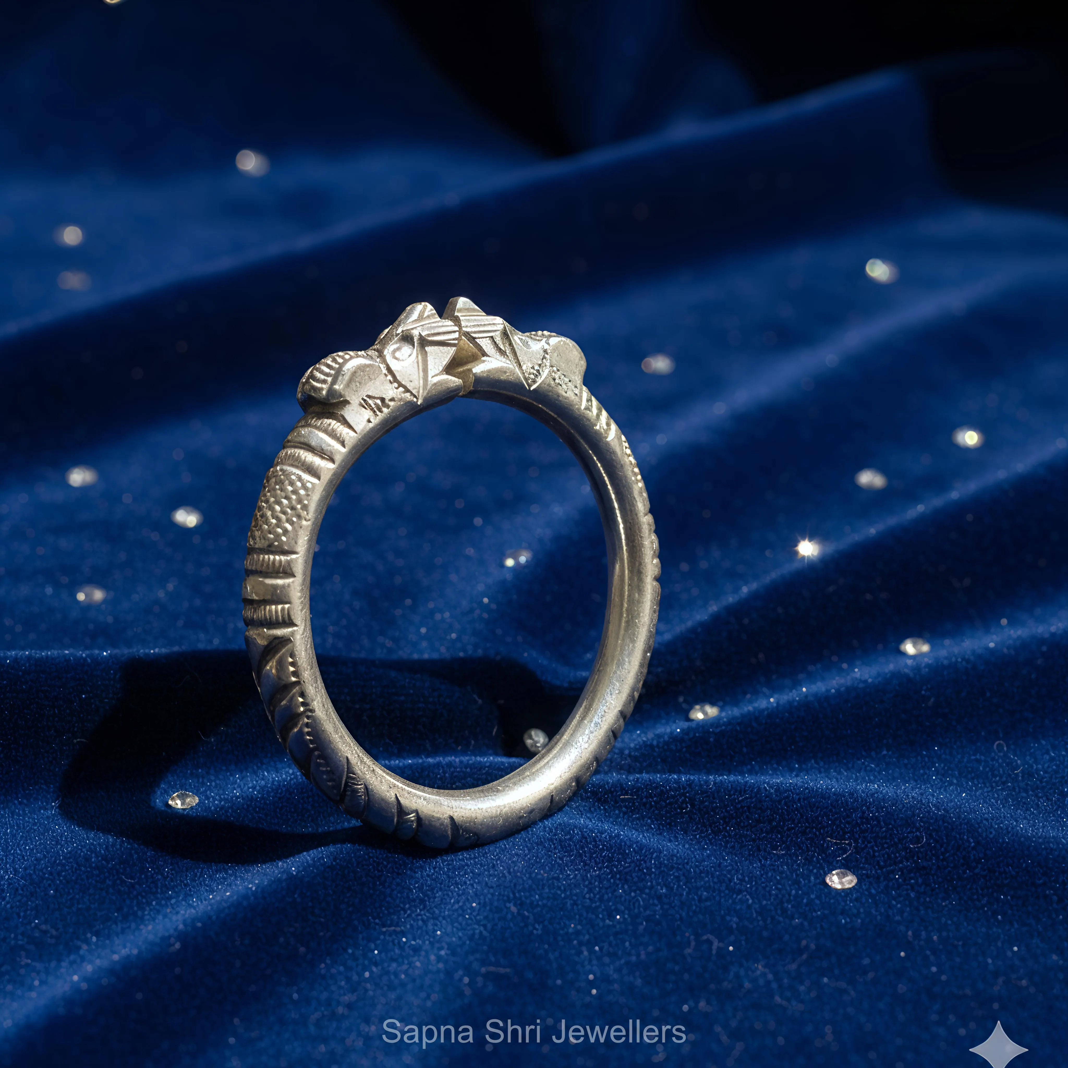 Classic Naharmukhi silver kada for men with strong build and traditional design—perfect for daily and cultural wear.