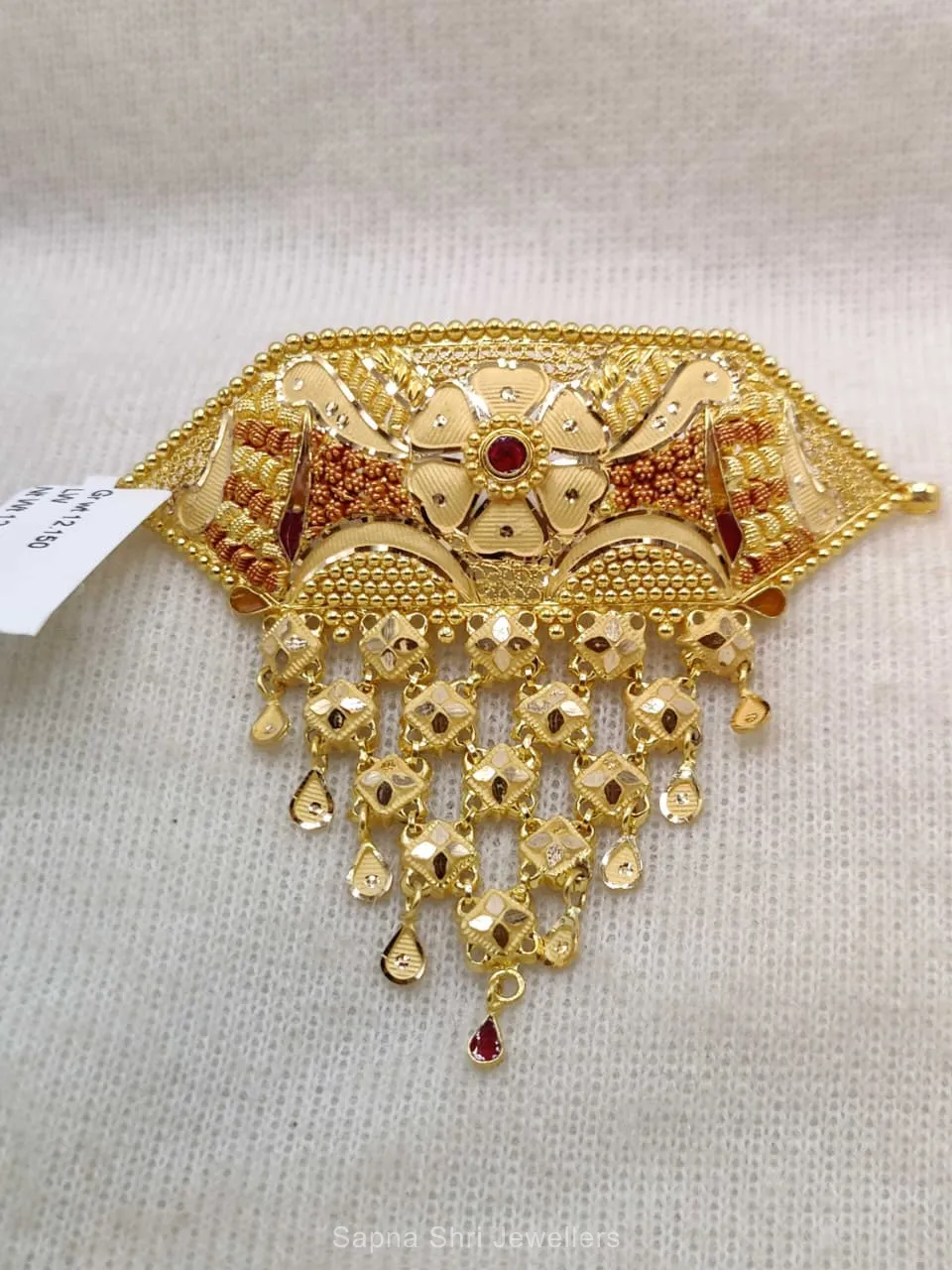 BIS HallmarkThis stunning choker blends matte and polished gold textures with a central stone focal point. Its unique craftsmanship makes it a standout piece for any ethnic attire.