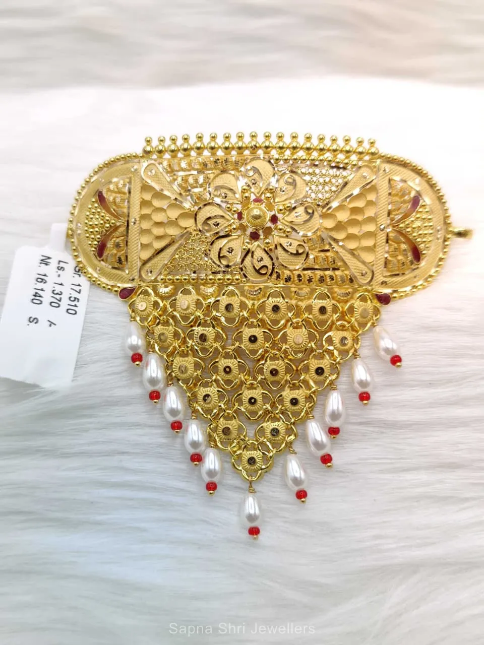 BIS HallmarkA masterpiece of traditional artistry featuring intricate floral filigree and elegant pearl drops. Perfect for bridal elegance and festive celebrations with premium gold finish.