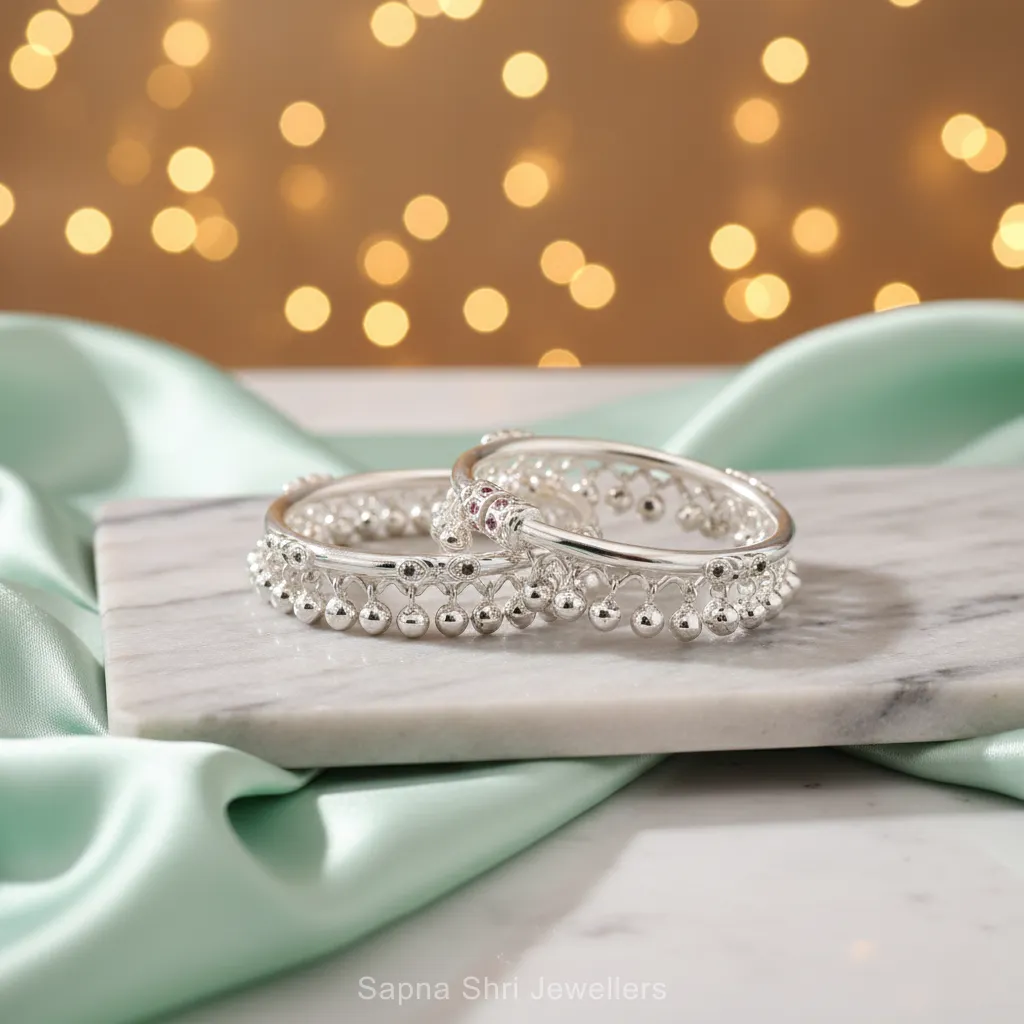 BIS HallmarkThese stunning silver bangles/anklets feature hanging silver beads that create a gentle, musical sound with every movement. They are designed to celebrate the milestone of a baby’s first steps, adding a rhythmic joy to your home. It’s more than jewelry; it’s the soundtrack to your child’s happiest early moments.