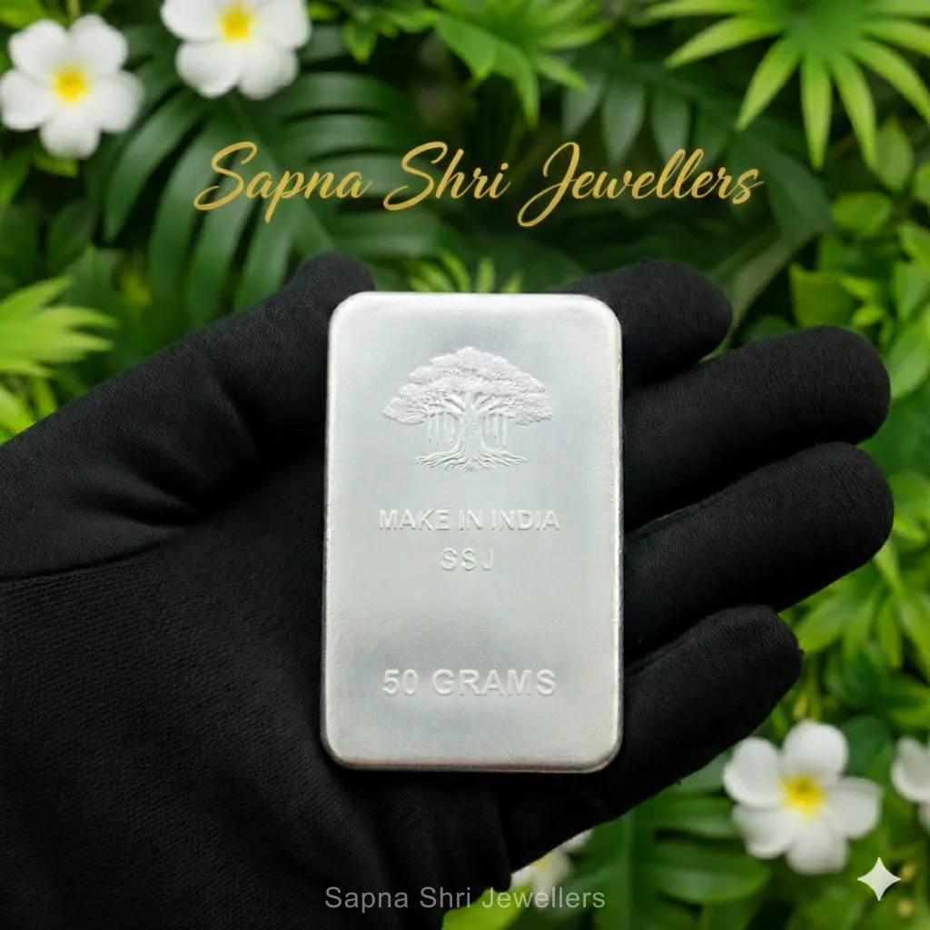 Certified SSJ 999 purity silver bar—trusted, high-grade investment option with superior purity.