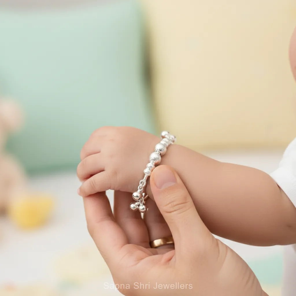 BIS HallmarkThis bracelet features textured silver beads that mimic the look of a starry night, providing a tactile experience for your baby. Its high-polish finish ensures it’s safe for sensitive skin while offering a sophisticated look for daily wear. A great "Welcome Home" gift that grows with the child.