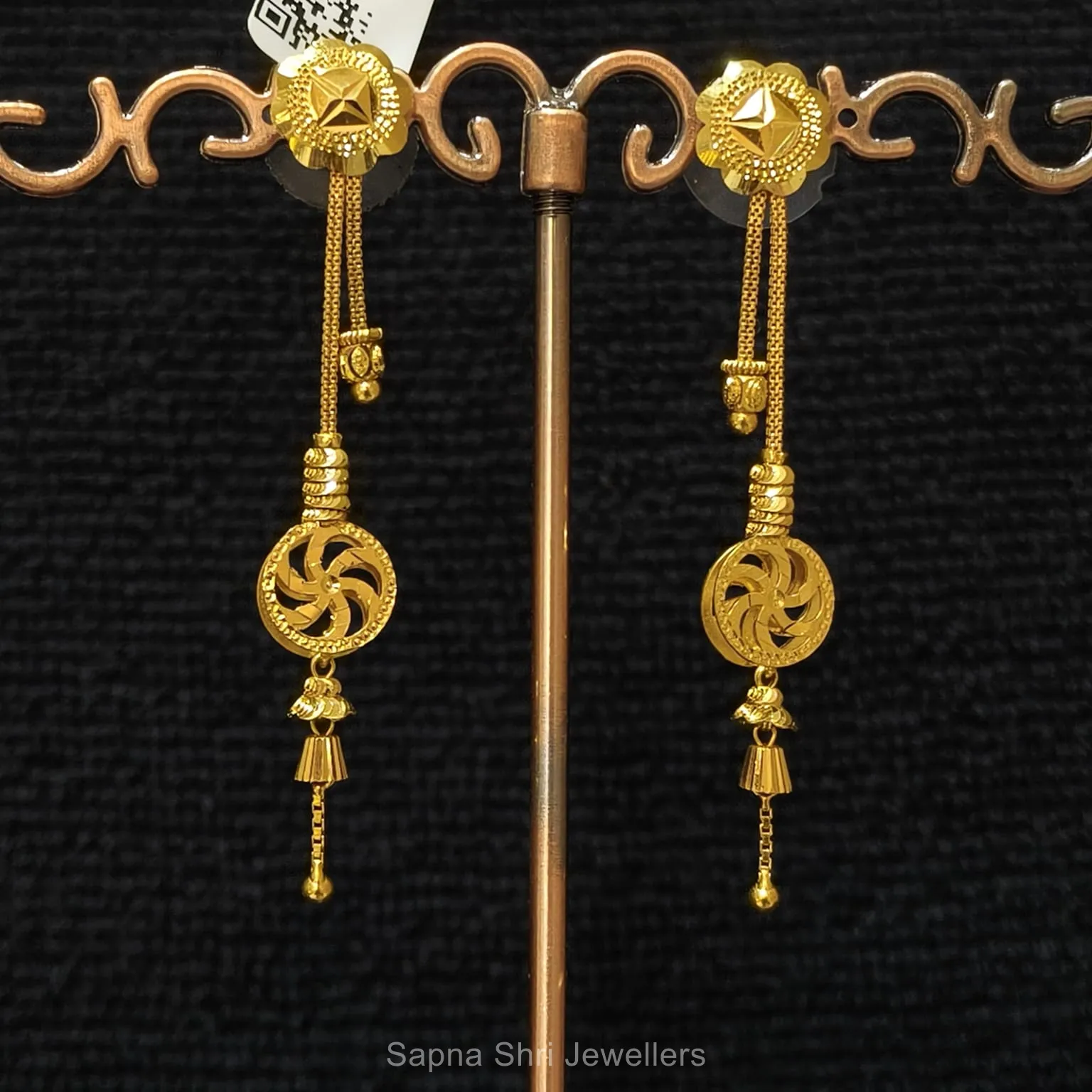 BIS HallmarkStylish 22K 916 hallmark Sui Dhaga earrings offering a sleek and elegant look for daily wear.
