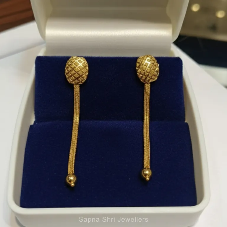 BIS HallmarkStylish Sui Dhaga gold earrings perfect for office and everyday elegance.