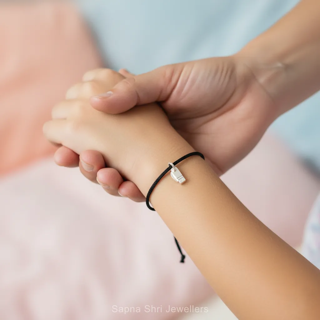 BIS HallmarkThis sleek silver protector is designed to be your baby’s first guardian, blending ancient tradition with a modern aesthetic. It sits comfortably against their skin, making it an ideal choice for naming ceremonies or everyday wear. Let this piece be a reminder of the love and protection that surrounds your little one every single day.